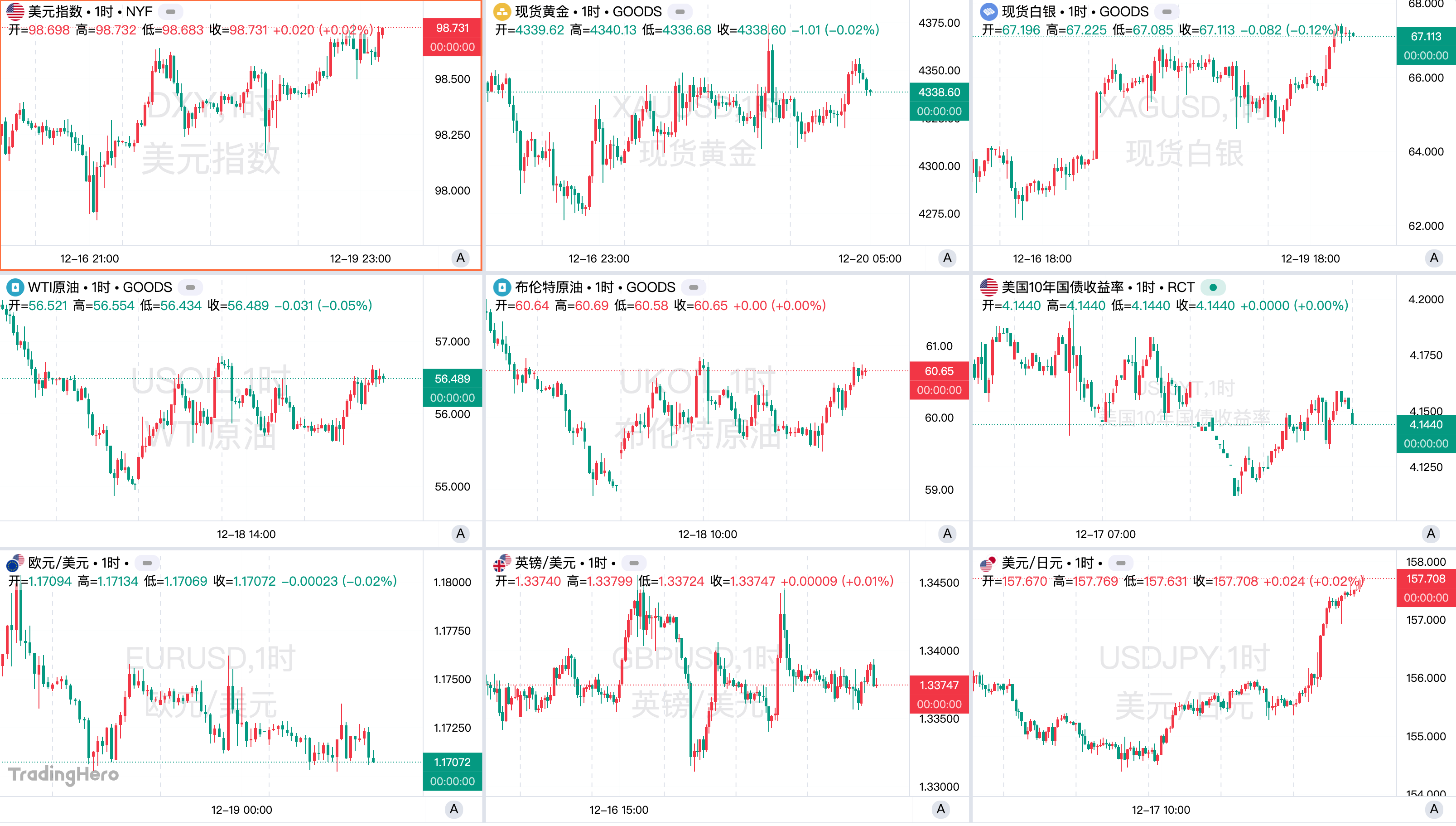 本周,美元指数整体呈现先跌后涨的走势。周初受非农数据喜忧参半、通胀预期反复影响,美元一度下破98关口,但未有效跌破并回升。CPI低于预期一度引发美指快速跳水,随后在美债收益率企稳配合下反弹修复,全周重心小幅上移。本周美指收于98.73,上涨0.33%。