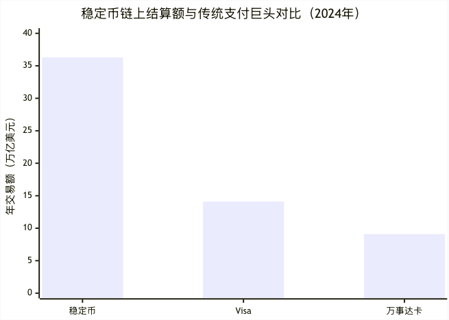 稳定币年度链上结算额达到36.3万亿美元,这一数字不仅首次超越Visa(14.1万亿美元) 与万事达卡(9.1万亿美元) 的年度交易量总和,更重要的是揭示了稳定币作为全球价值传输层的巨大潜力。它证明在区块链上,稳定币已经成为一个吞吐量巨大的结算网络。